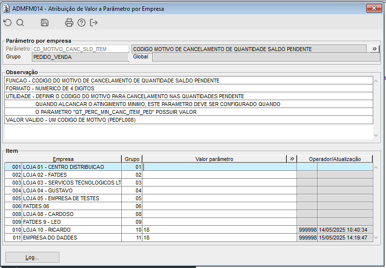 Imagem 2 - Parâmetro empresa CD_MOTIVO_CANC_SLD_ITEM