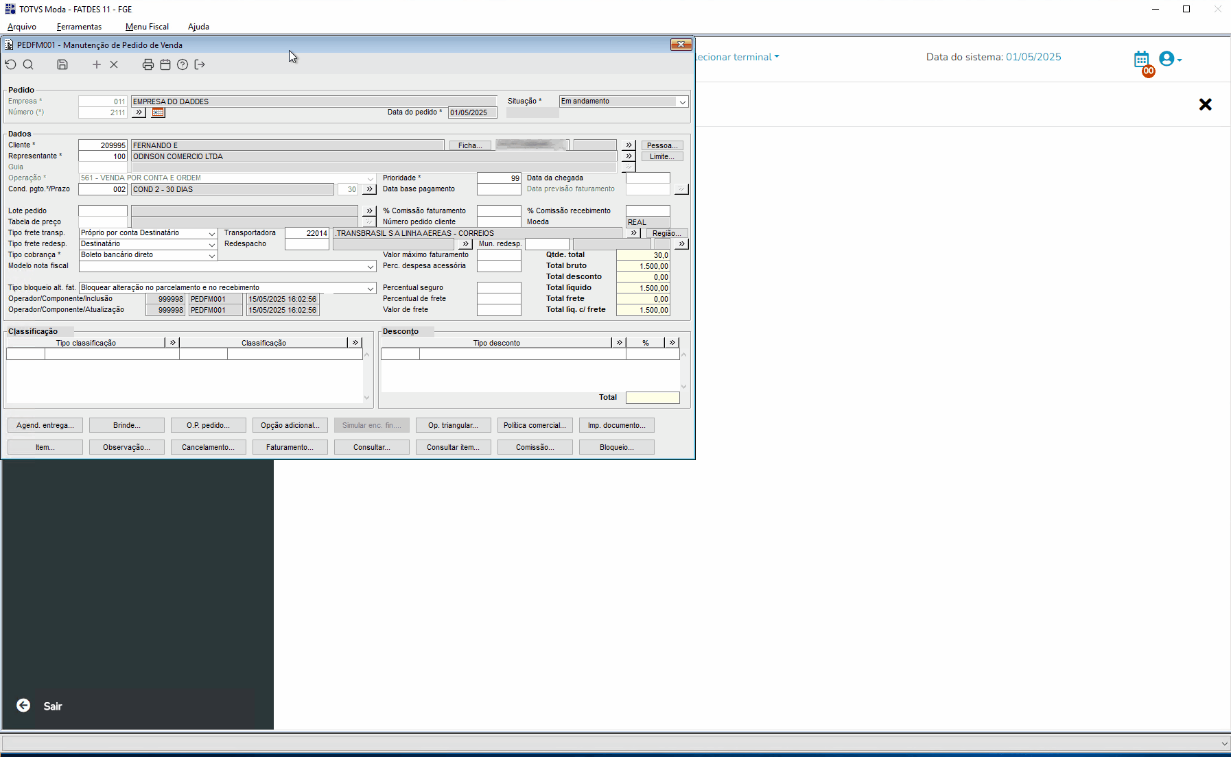 | Função: | Cancelamento Automático de Quantidade Pendente de pedido de venda |
