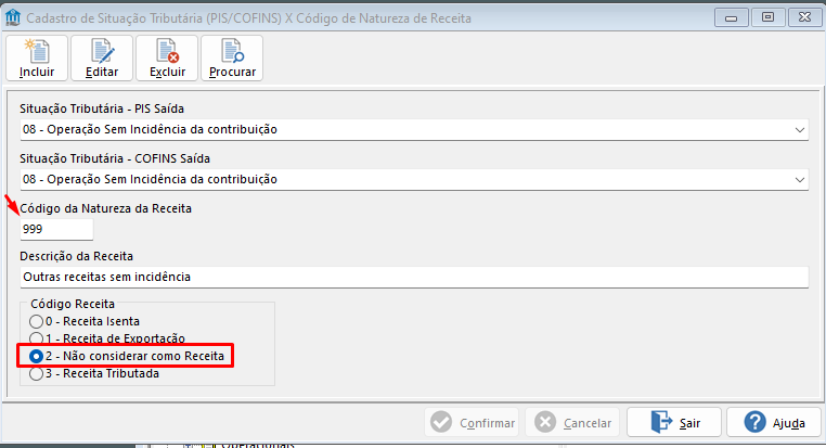 | Documentos Escriturados no Livros de ICMS/ISS | CST's 08 e 49, que não caracterizam receita, valores tributados anteriormente em Demais Documentos e/ou constam com Código da Natureza da Receita 999 e Código Receita 2-Não considerar como Receita, conforme exemplo abaixo. |
