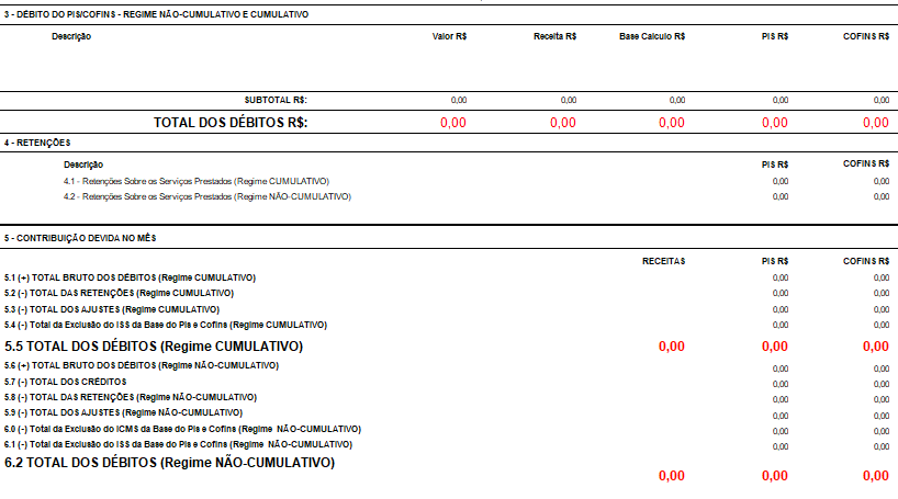 5.5 TOTAL DOS DÉBITOS (Regime CUMULATIVO) → Valor a recolher sobre a receita cumulativa