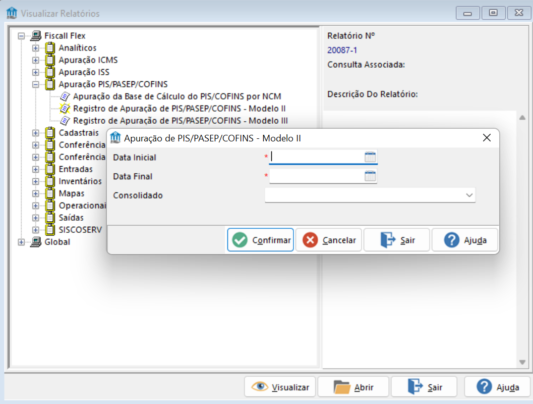 Este documento visa apresentar o relatório Registro de Apuração de PIS/COFINS - Modelo II, para a apuração das contribuições sociais do PIS e da COFINS.