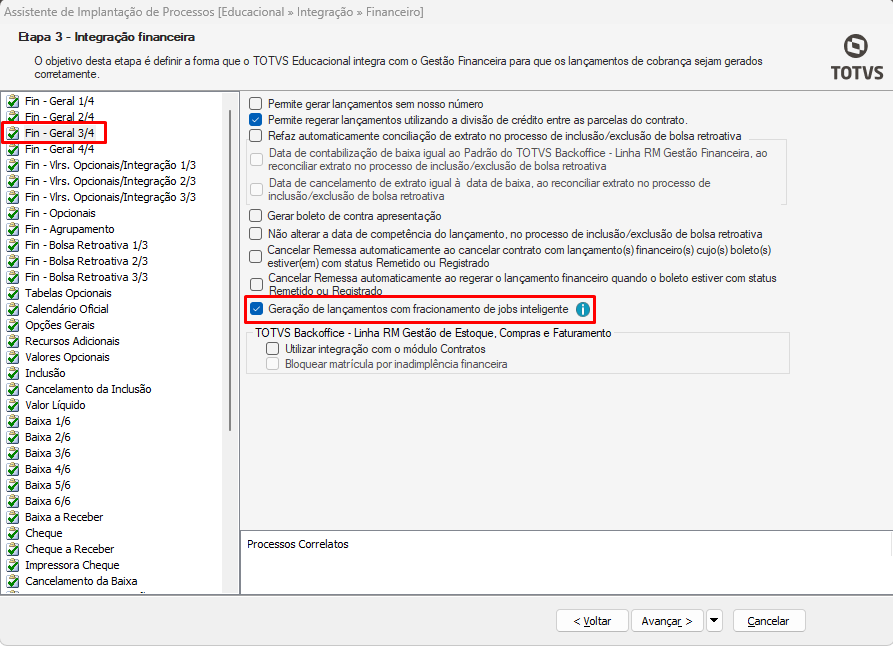 - Configurações / Parâmetros / Integração / Financeiro / Fin – Geral 3/4