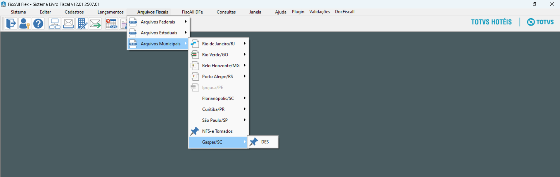 Arquivos Fiscais > Arquivos Municipais > Gaspar/SC > DES.