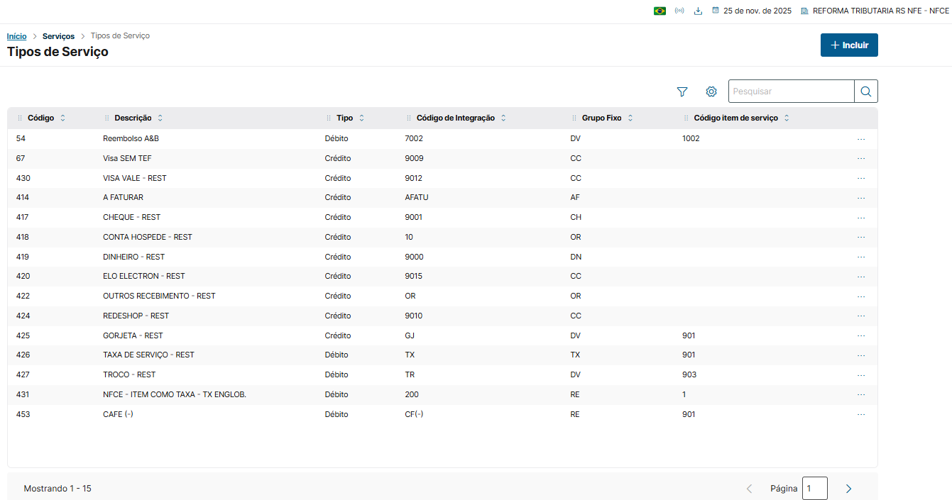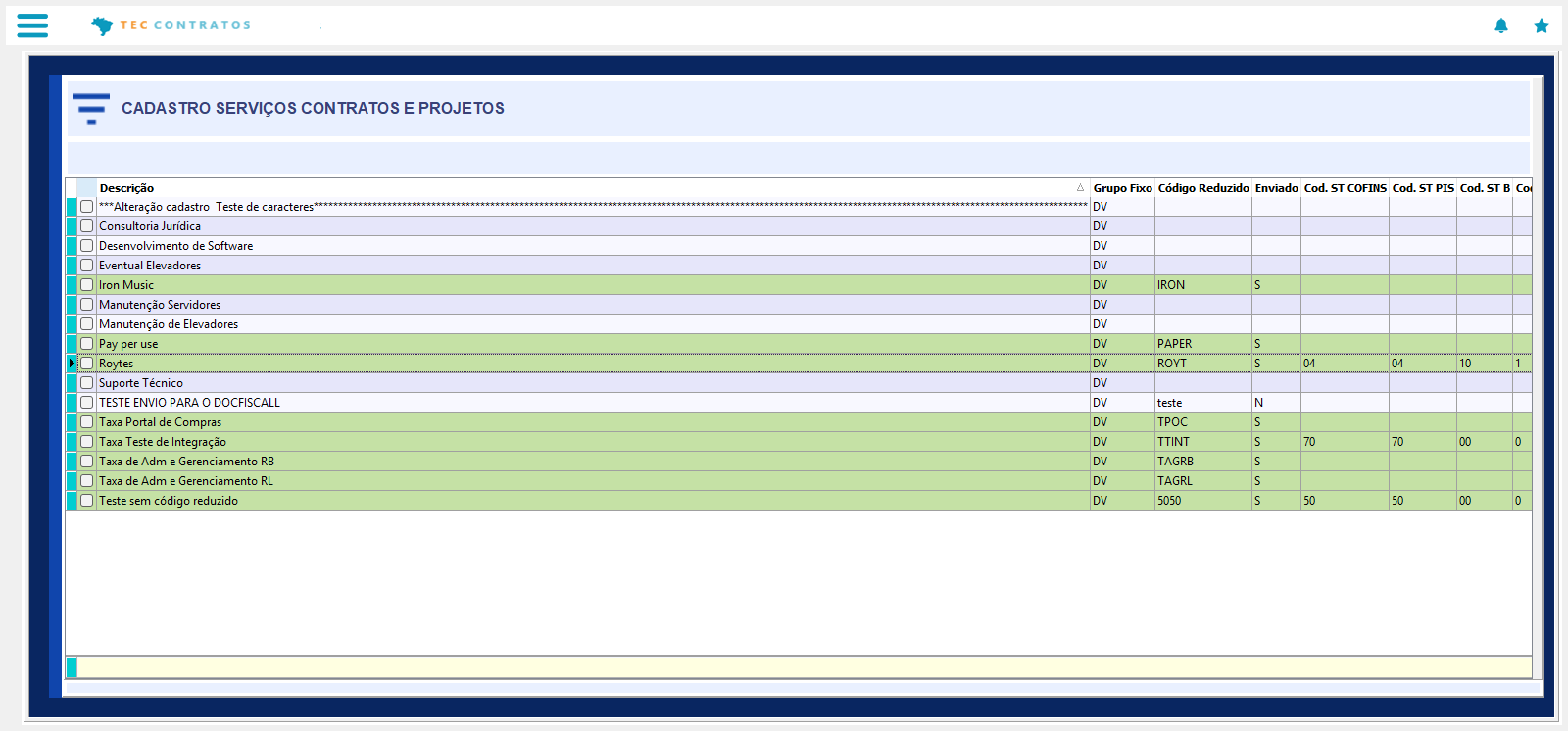 Após a integração, será possível realizar a consulta dos cadastros integrados com o TEC, poderá ser realizado no menu : Serviços - Tipos de Serviços