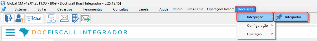 Depois acesse Global : DocFiscall - Integração - Integrador
