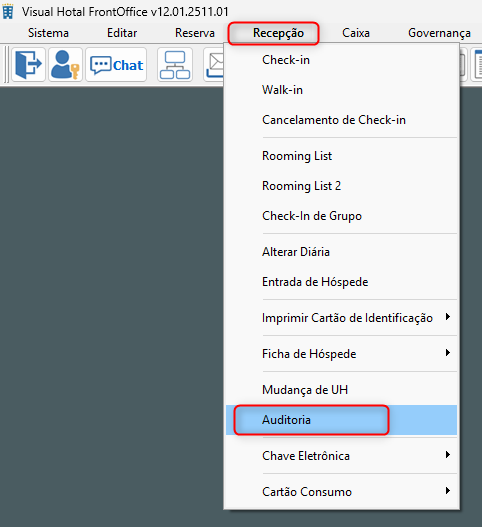 Acesse o módulo VHF, no menu: Recepção - Auditoria, para iniciar a rotina.