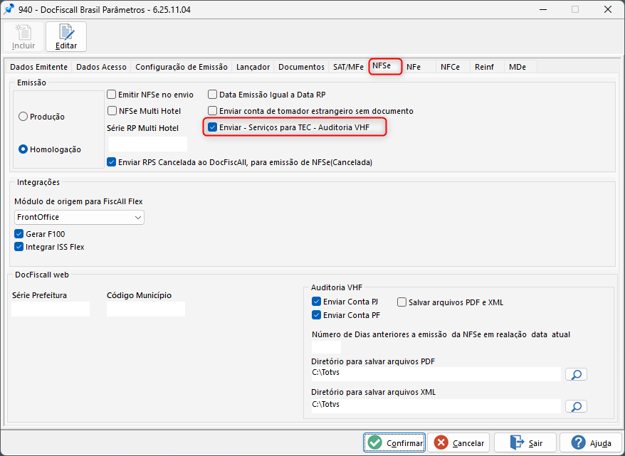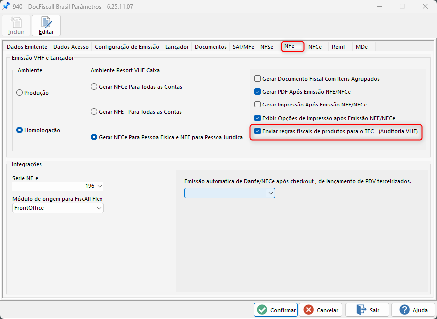 Este flag estará habilitado por padrão, permitindo que os dados sejam transmitidos automaticamente durante a execução da rotina de Auditoria do PMS Hotel, especificamente no passo 15 da integração DocFiscall Brasil – Auditoria VHF.