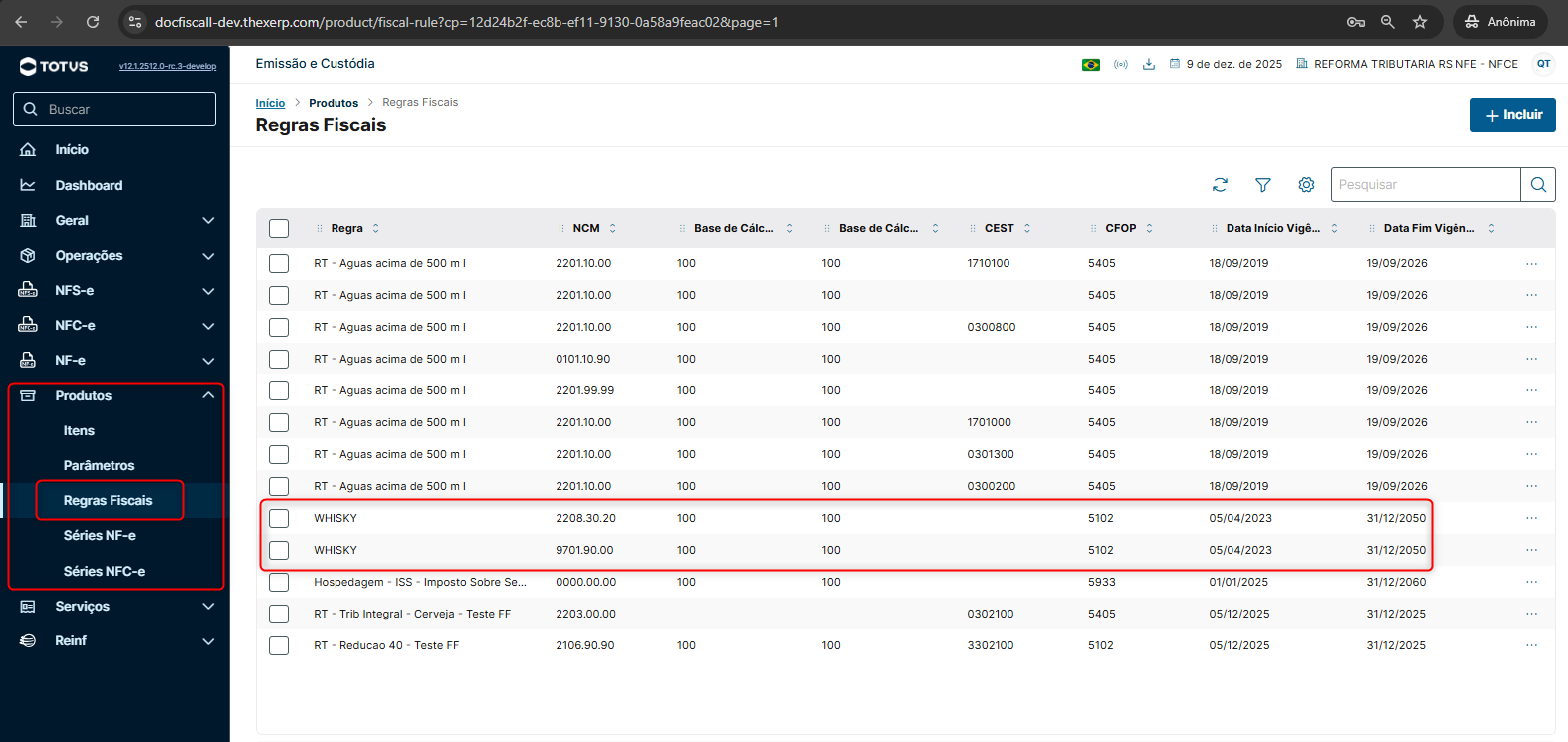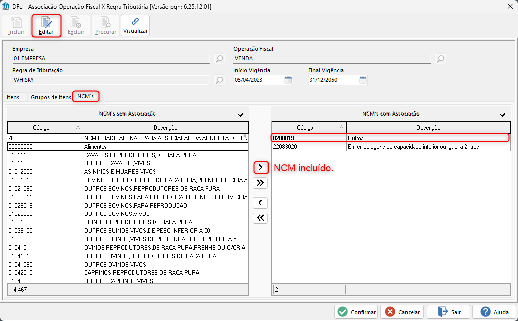 Plugin  FiscAll DFe - Cadastros - Associação Operação Fiscal x Regra Tributária deve ser atualizado para versão igual ou superior 6.25.12.01