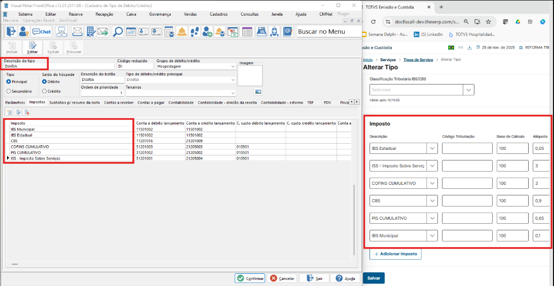 3. Associar Impostos x Tipos de Serviço no Totvs Emissões e Custódia