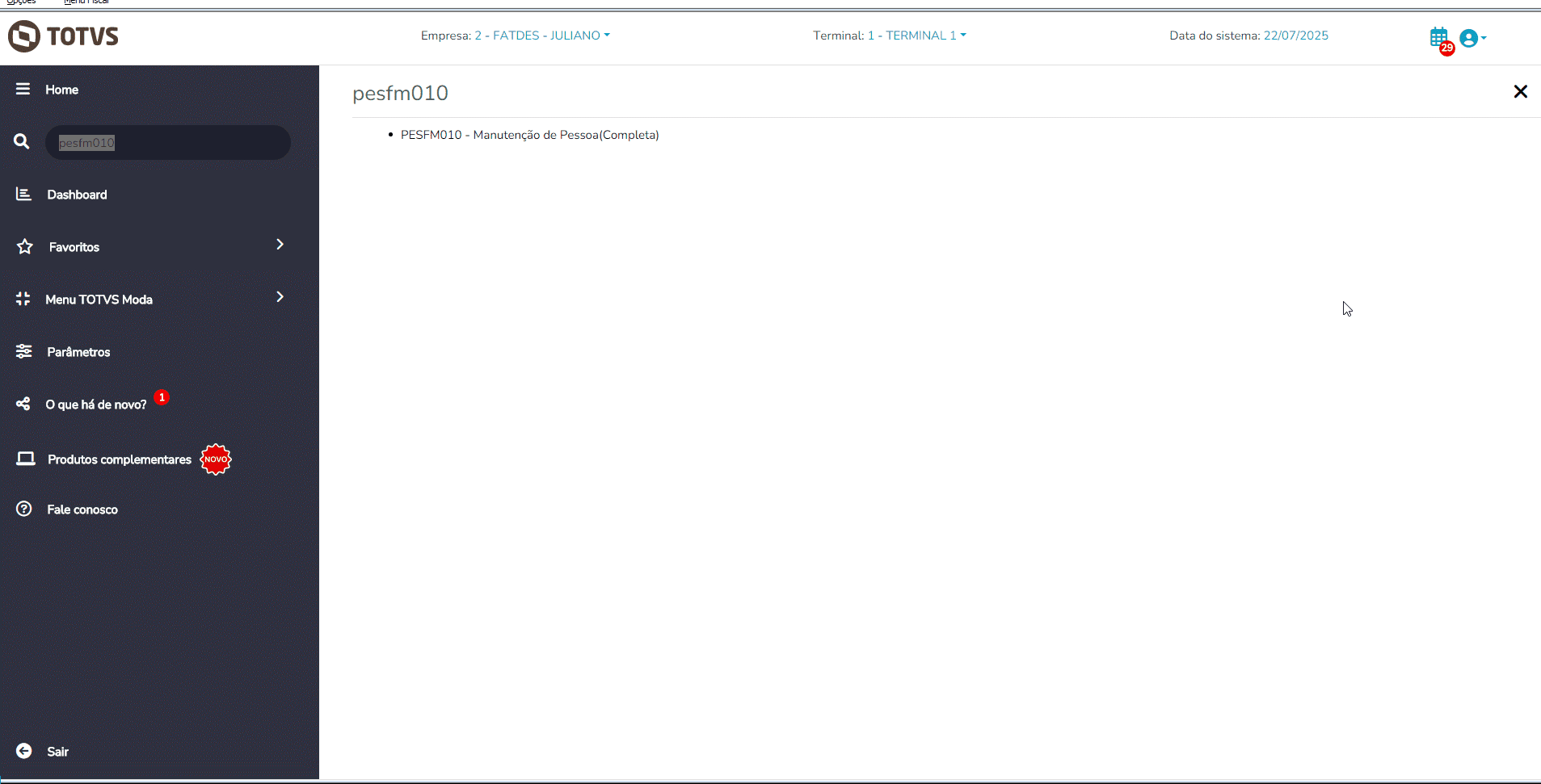 Na demonstração estava logado na empresa 2 com usuário 999998. Na restrição IN_ALT_CAD_FUNC do ADMFM024 nesta empresa estava liberado apenas o usuário 282, assim ao tentar alterar no PDVFM025 o ano de nascimento do cadastro da pessoa 7 (que é uma funcionária), não foi permitido realizar a alteração apresentado uma mensagem em tela. Após foi realizado a liberação da restrição IN_ALT_CAD_FUNC do ADMFM024 para o usuário 999998, onde foi possível realizar a alteração no cadastro da pessoa 7 normalmente no PDVFM025.