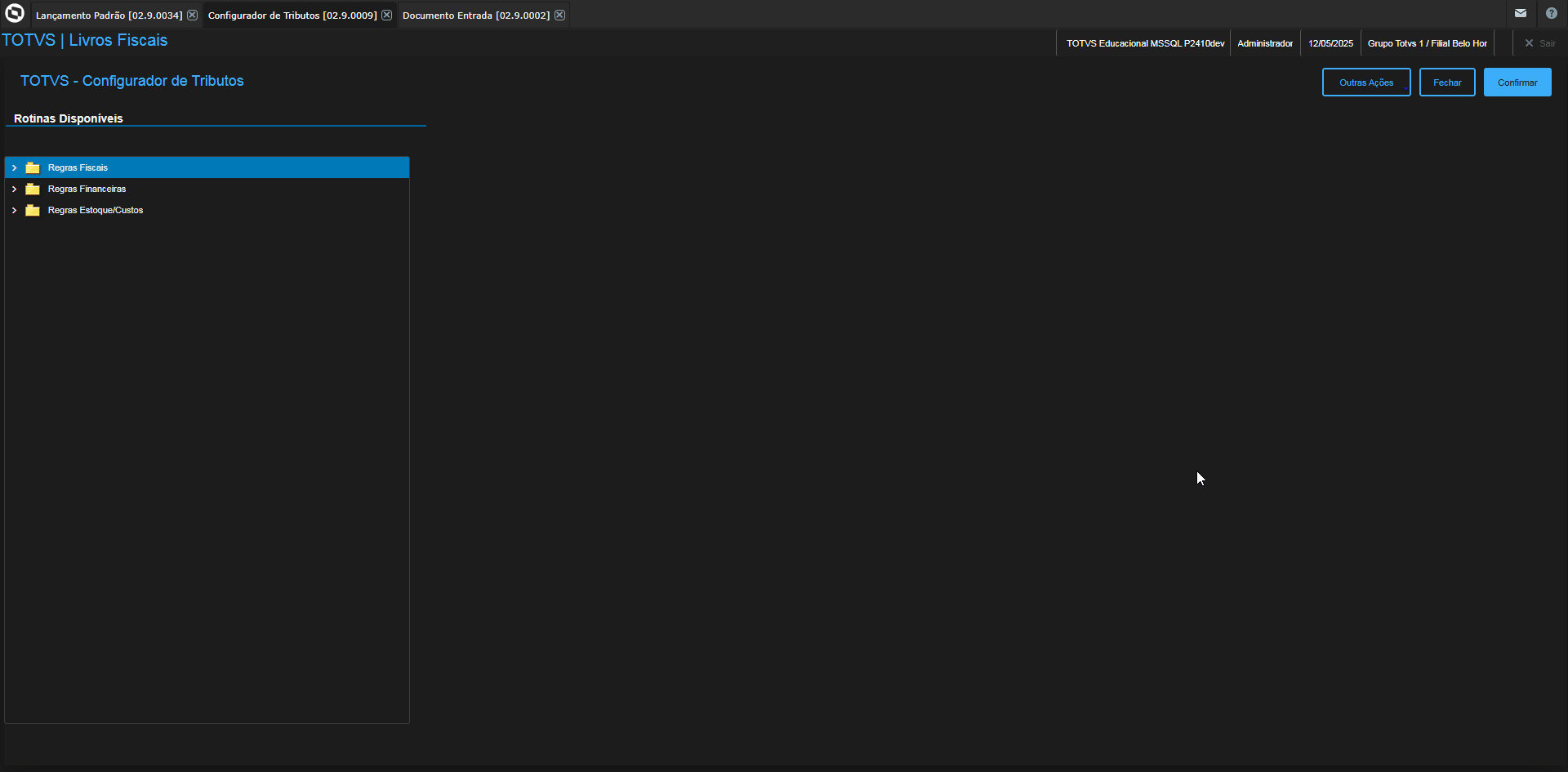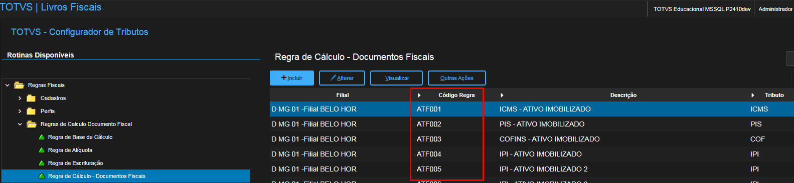 Para configurar, acesse: Configurador de Tributos → Regras Fiscais → Regras de Cálculo Documento Fiscal → Regra de Cálculo - Documentos Fiscais