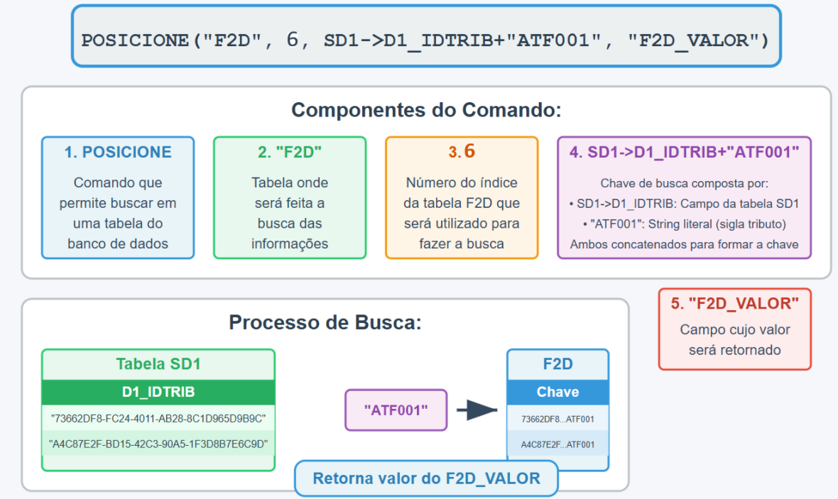 - "F2D_VALOR": É o campo cujo valor será retornado após o posicionamento na tabela.