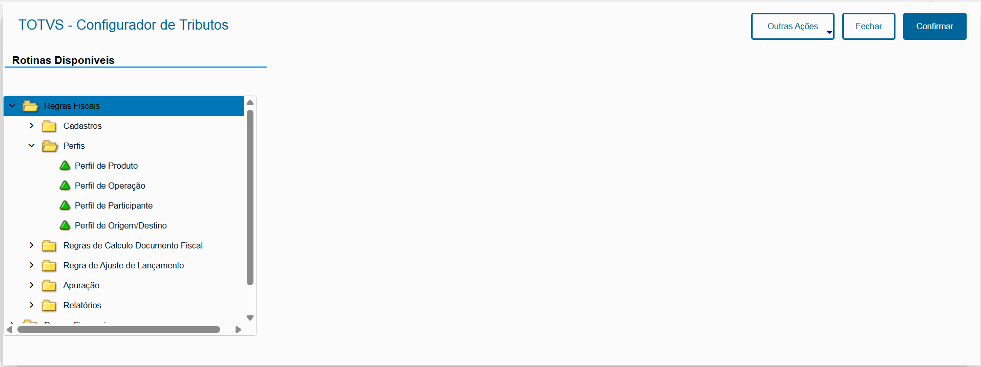 Regras Fiscais > Perfis > Perfil de Origem/Destino