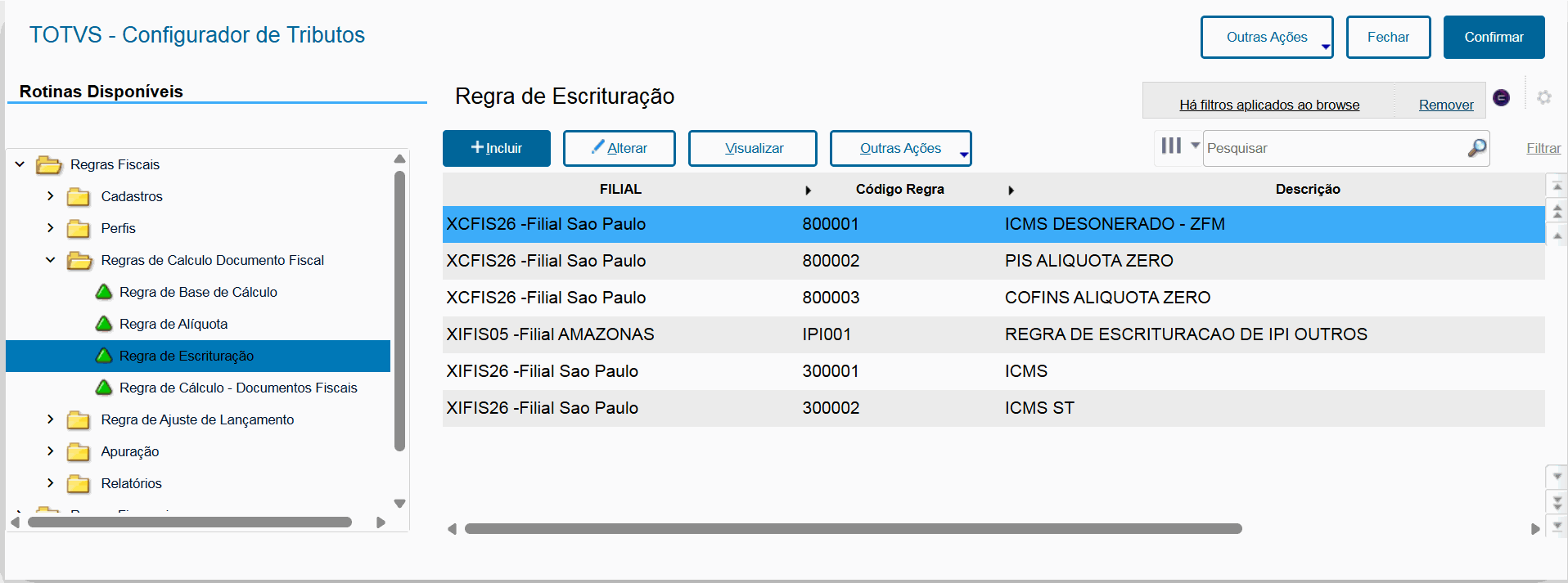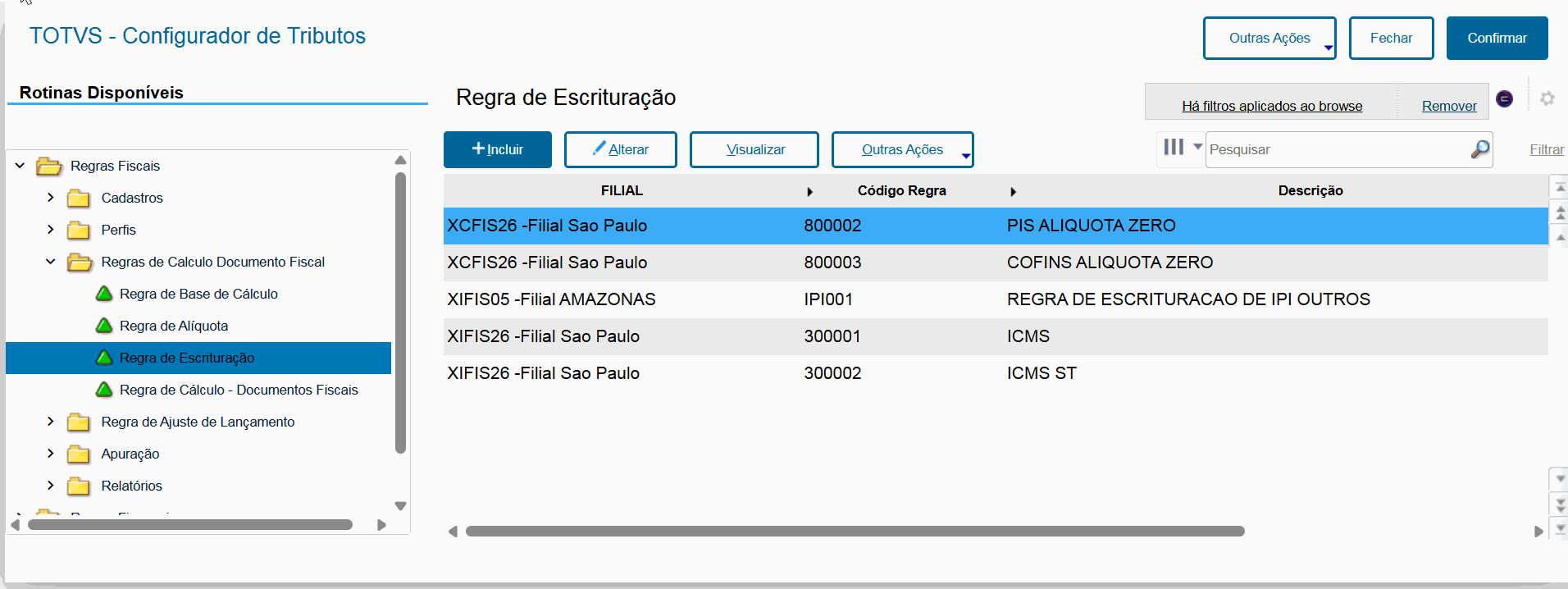 Regras Fiscais > Regras de Calculo Documento Fiscal > Regra de Escrituração