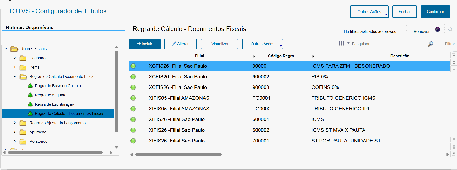Regras Fiscais > Regras de Calculo Documento Fiscal > Regra de Calculo – Documentos Fiscais