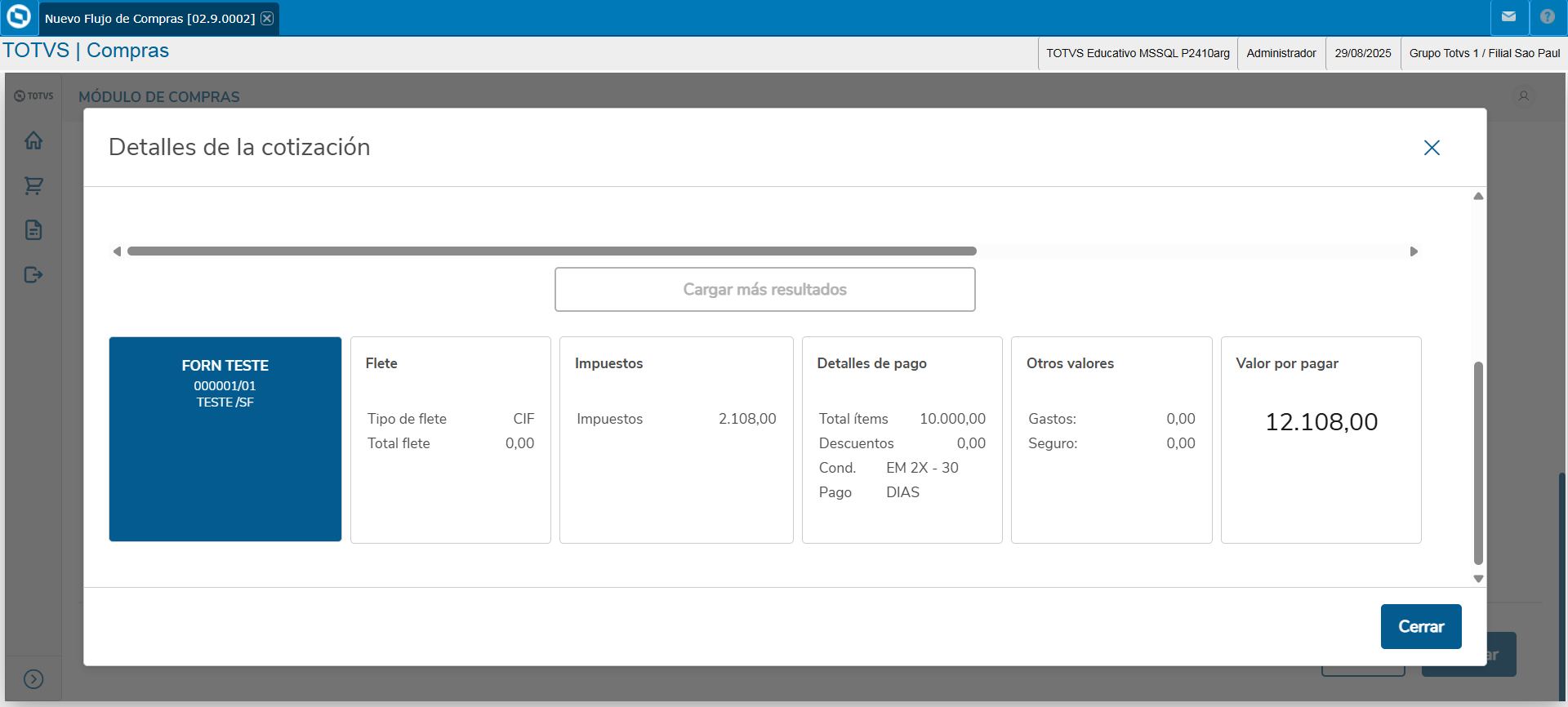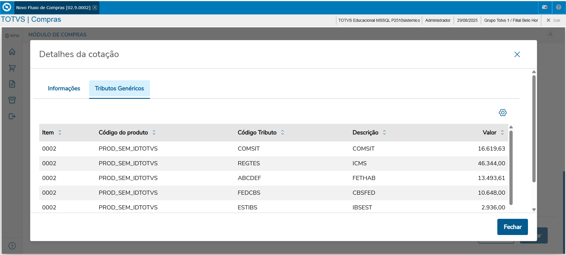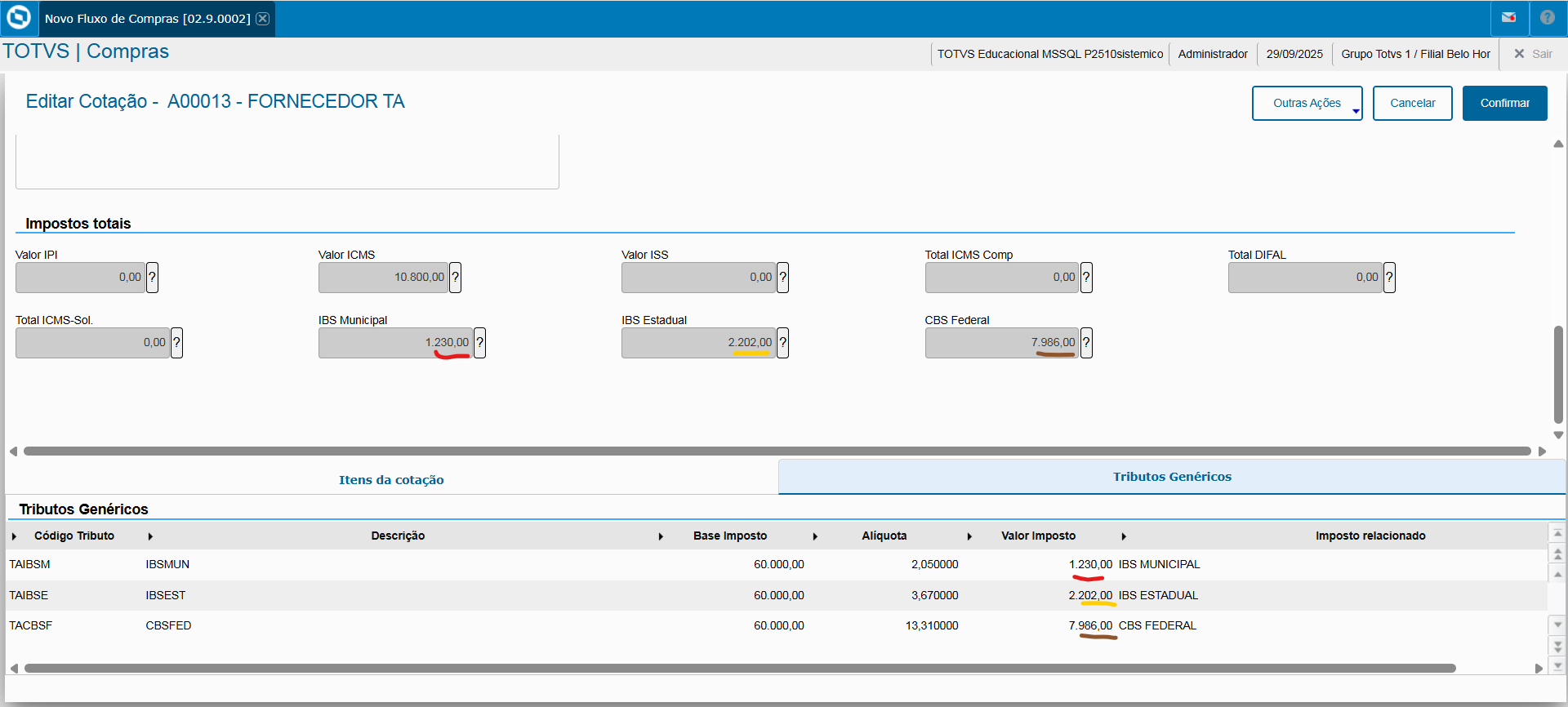 Além disso, os novos impostos CBS Federal (Contribuição sobre Bens e Serviços) e o IBS Estadual e/ou Municipal (Imposto sobre Bens e Serviços), não estavam sendo exibidos na coluna de impostos, em Detalhes da análise, nem somados no valor total da cotação.