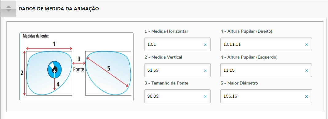 DVARPPV-109 DT Campos do Dados da Medida da Armação na receita do tipo DECIMAL