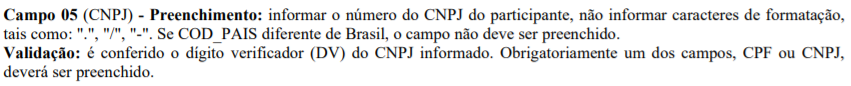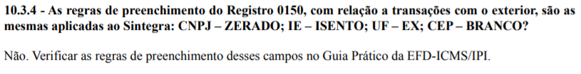 EFD ICMS IPI - CNPJ no Registro 0150 quando participante do Exterior