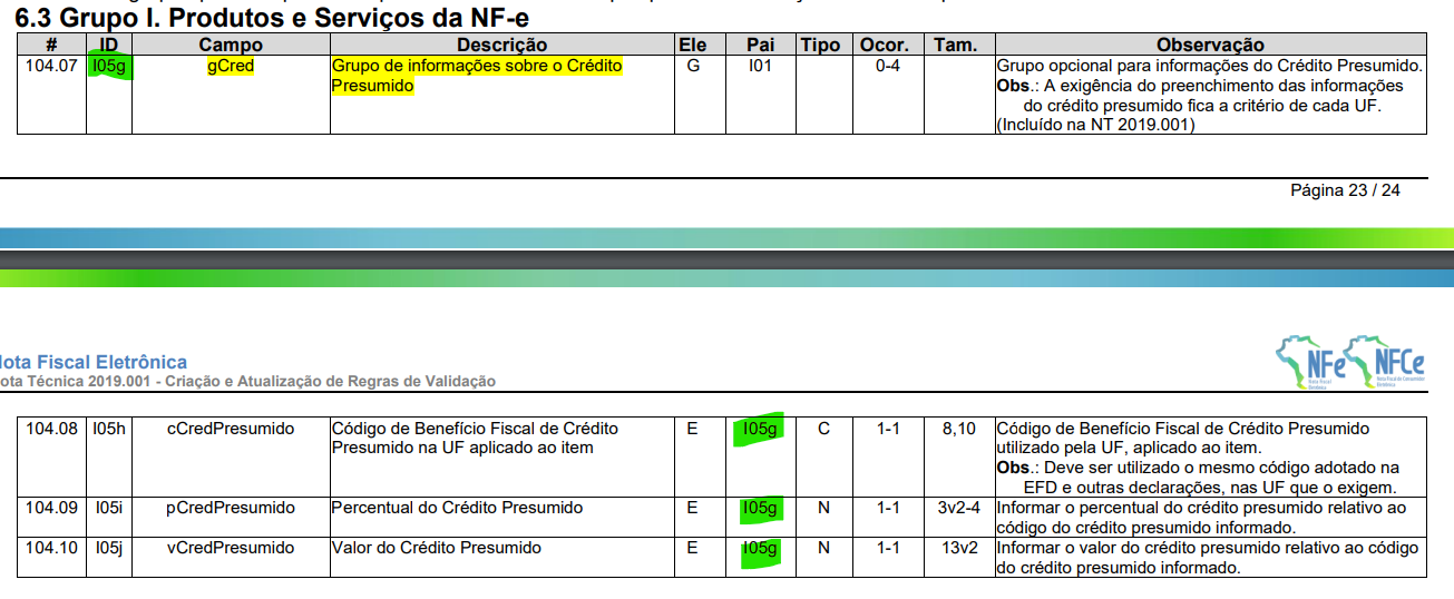 SC - NF--e - Grupo crédito presumido