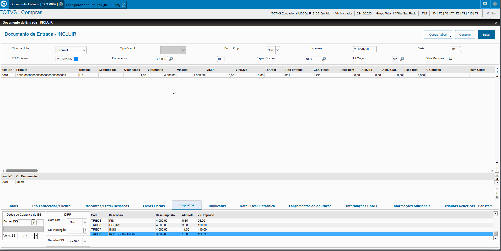 - CFGTRIB - Operações de Serviço - Cálculos no Configurador de Tributos