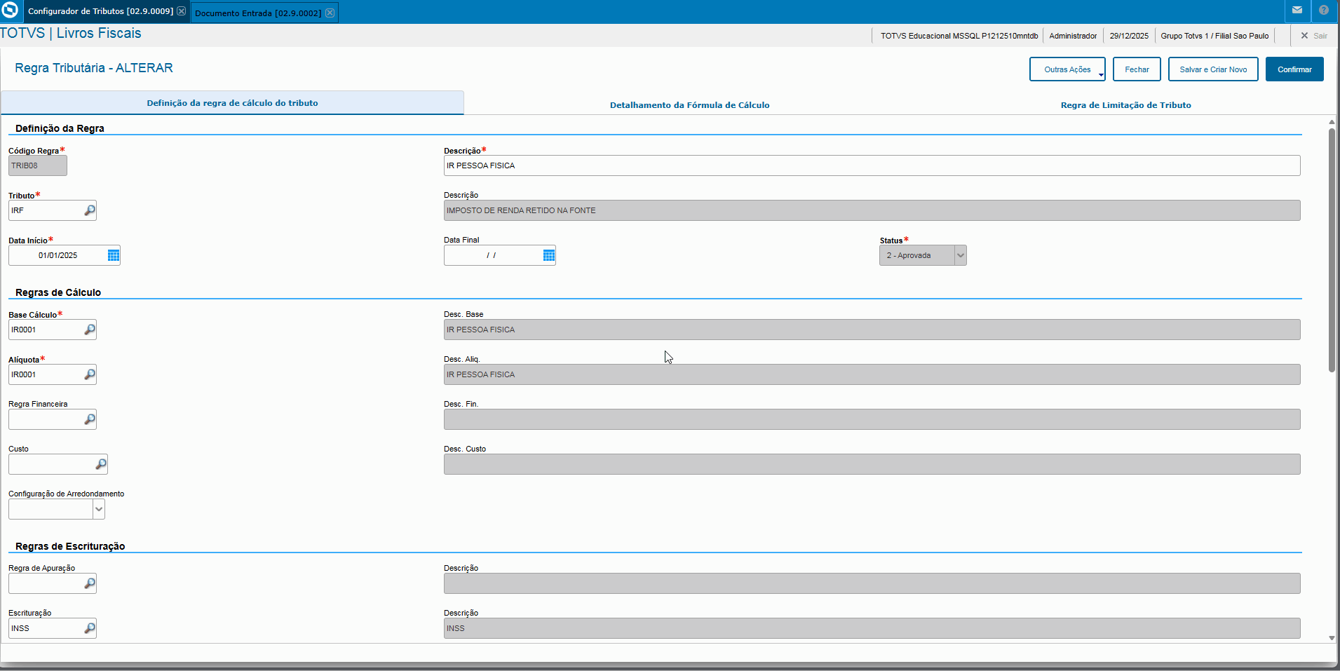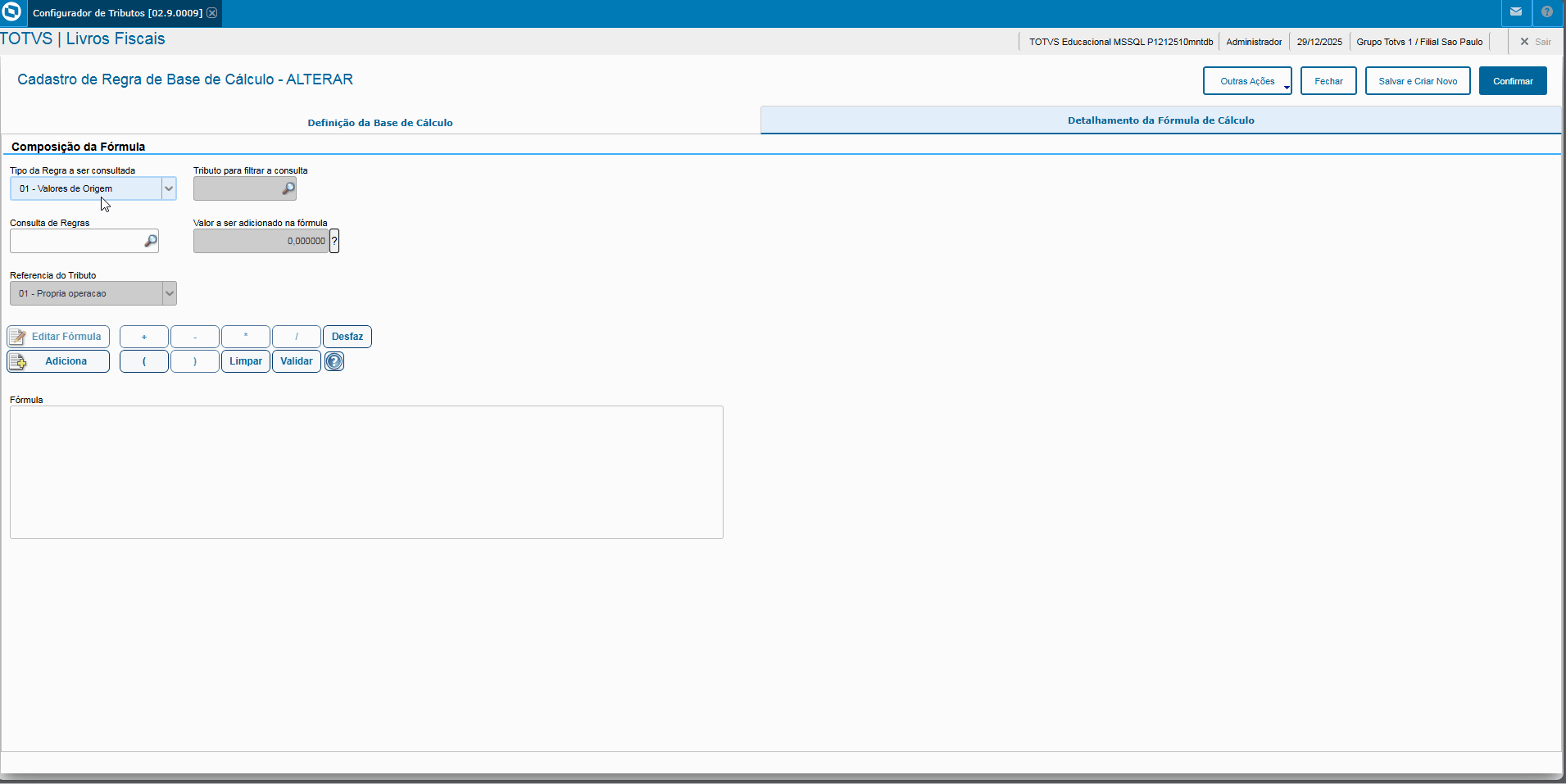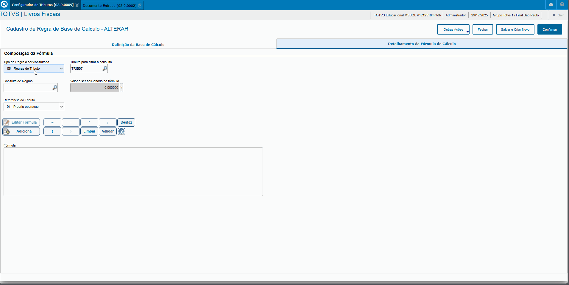 - CFGTRIB - Cálculos no Configurador de Tributos