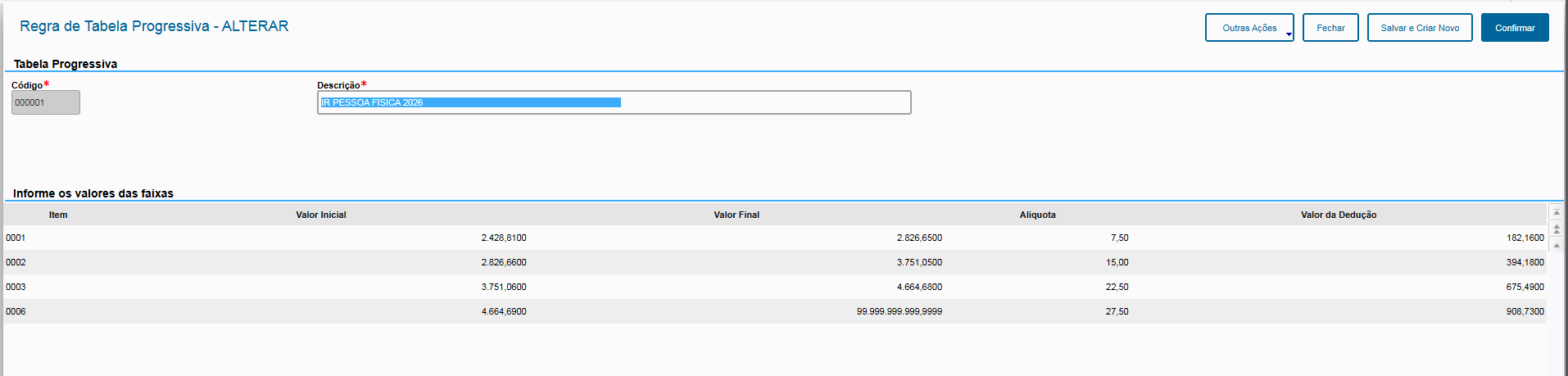 - CFGTRIB - Cálculo de IRPF utilizando a tabela progressiva, com desconto simplificado ou desconto normal