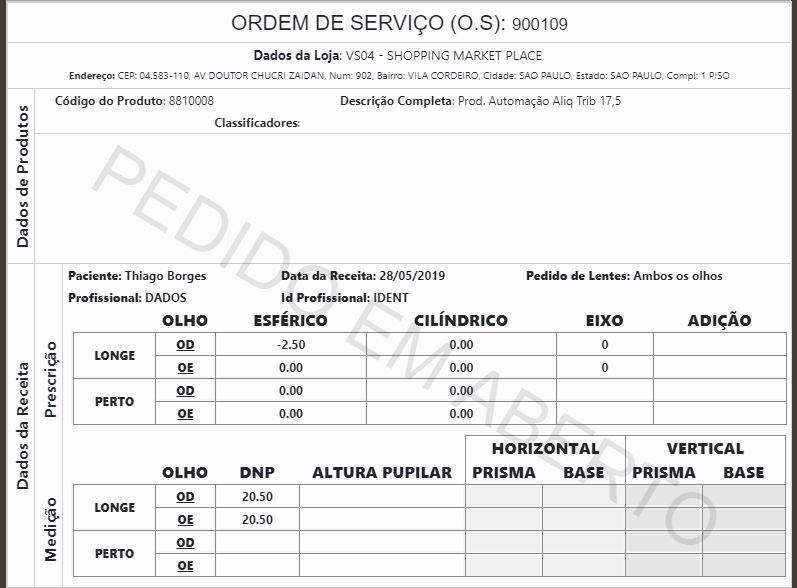 DT Marca d'agua "PEDIDO EM ABERTO"