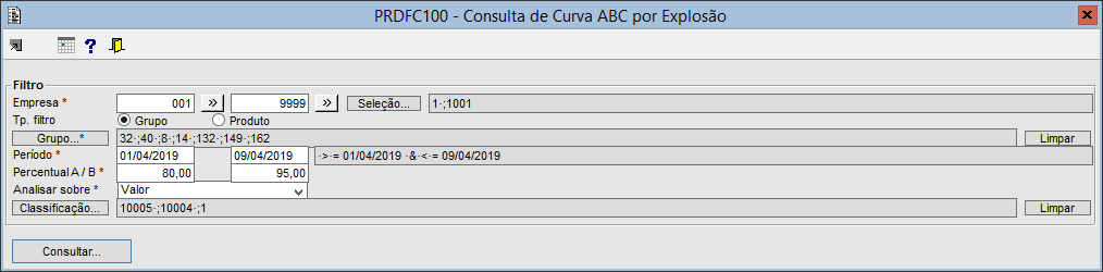 • DR PRDFC100 - Consulta de curva ABC por explosão