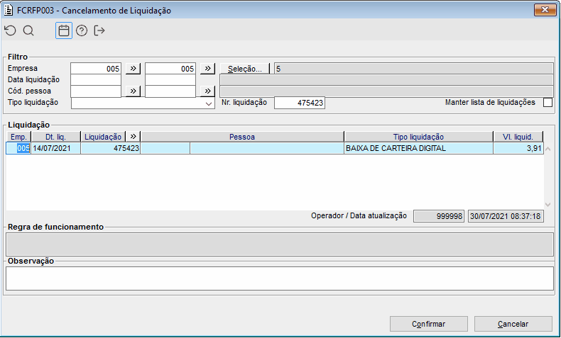• DT - Recebimento/cancelamento de carteira digital através do FCRFP038