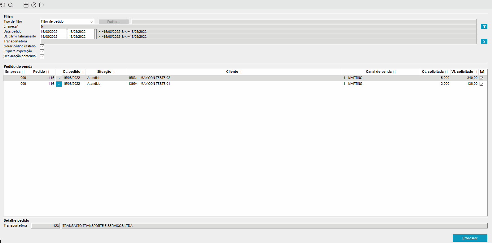 - DT Disponibilizar processo para gerar código de rastreio, imprimir etiqueta de expedição e declaração de conteúdo