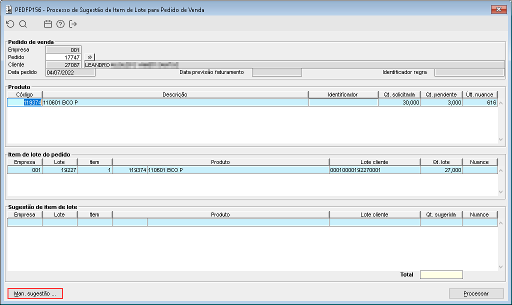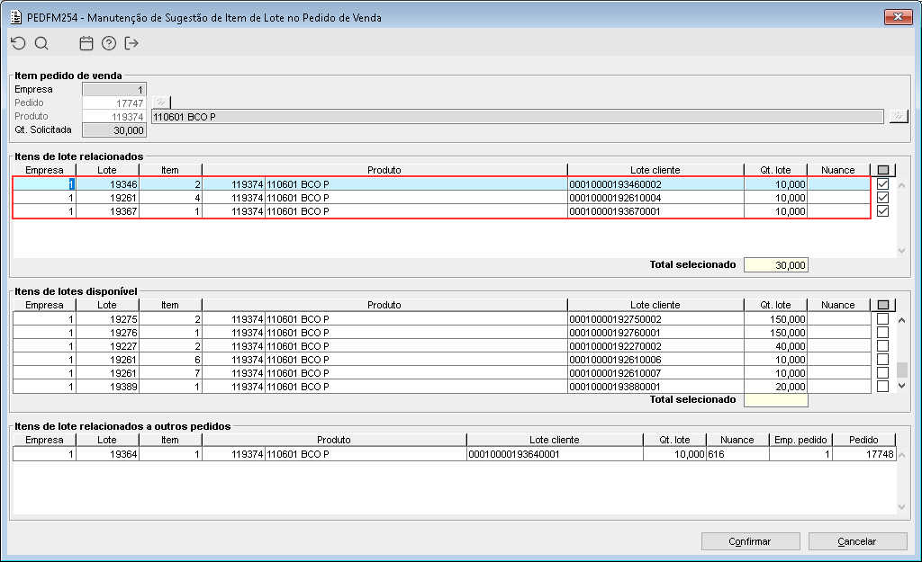 • DT Selecionar item de lote manualmente no processo de sugestão de itens de lote para venda