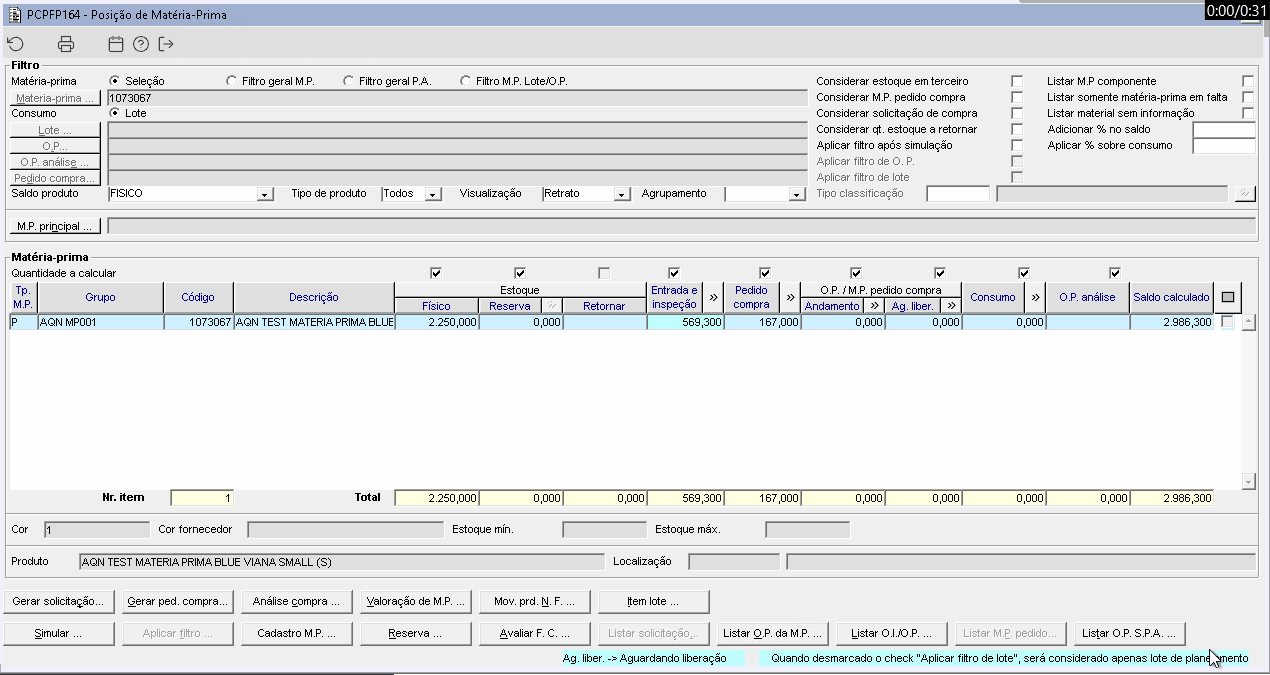 • DT Detalhamento da coluna "Entrada e Inspeção"(PCPFP164)