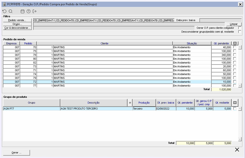 • DT Melhoria na distribuição de pedidos de compra a partir de pedido/lotes