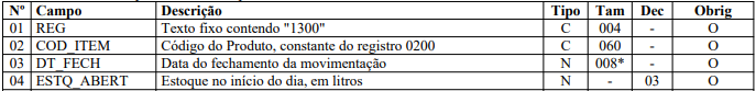 PE - SPED1300 - SPEDFISCAL- Movimiento diario de combustibles