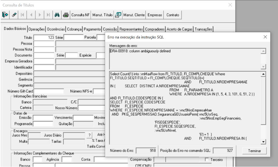 16331215 DSUPFIN-5739 DT Erro de Consulta de titulo