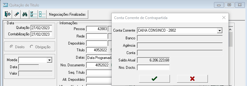16346524 DSUPFIN-5763 DT Erro na seleção da conta corrente na quitação de título