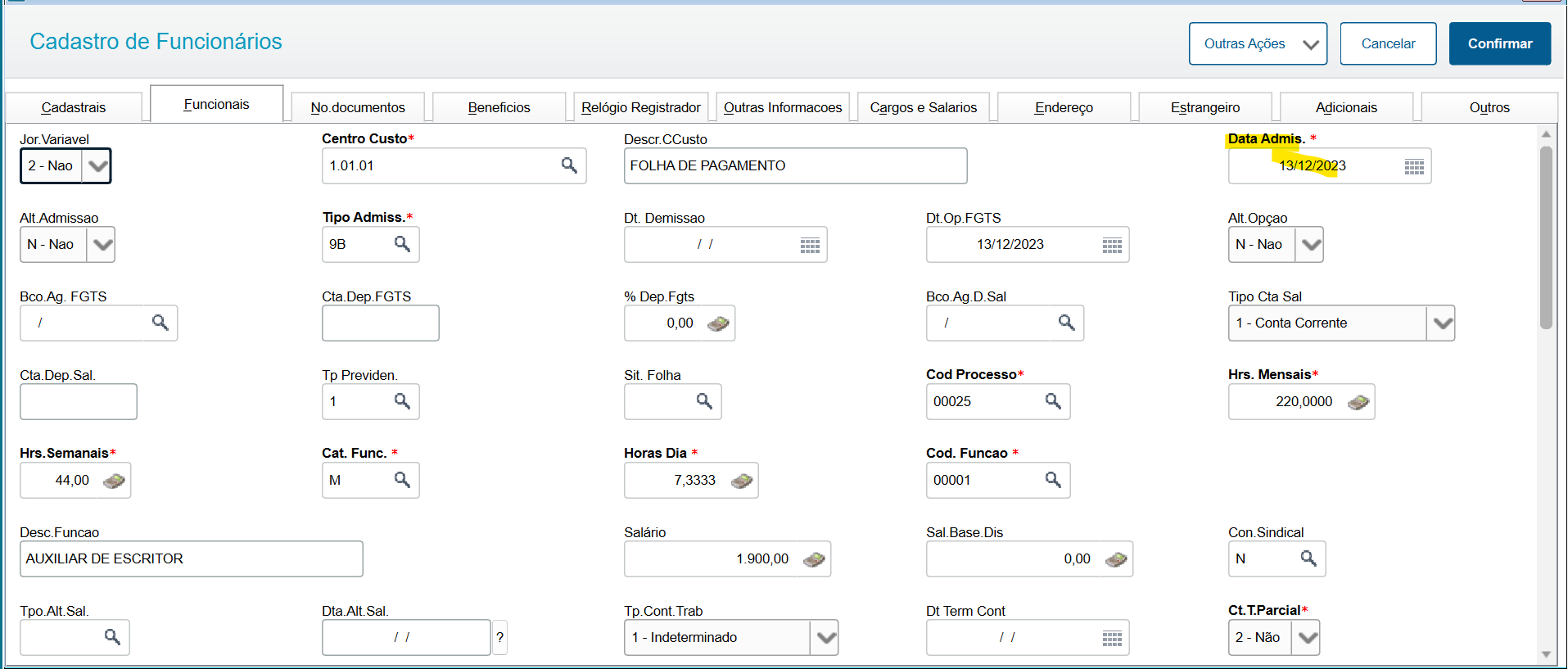 Data de Criação