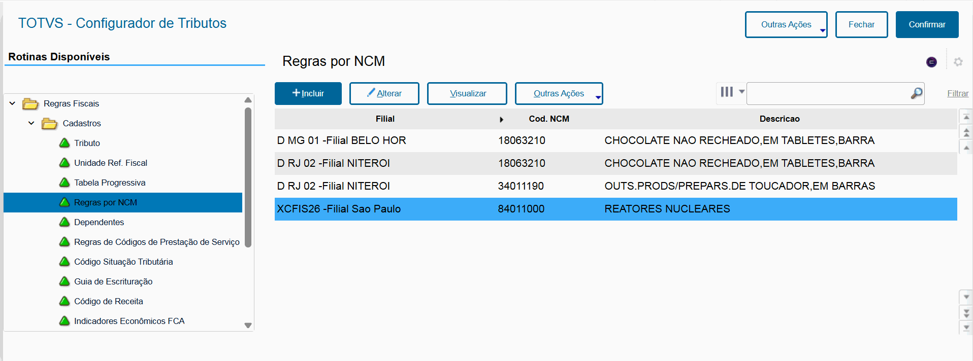 - CFGTRIB - Regras por NCM