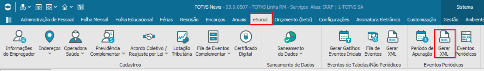 Acesse o menu eSocial | Gerar XML(Eventos Periódicos):