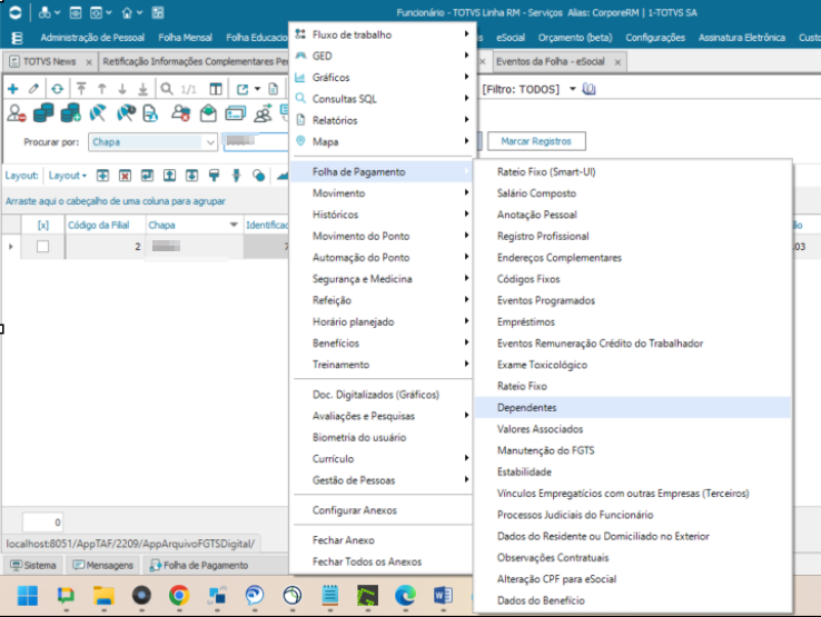 Acesse o menu eSocial | Eventos Periódicos. O XML será gerado corretamente, considerando o ajuste do dependente com o novo CPF.