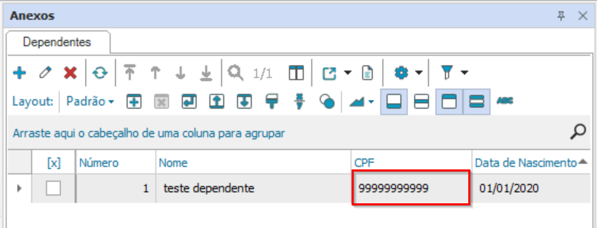 Para isso, acesse Administração de Pessoal | Funcionários | Anexos | Folha de Pagamento | Dependentes e realize a alteração do CPF no cadastro do dependente.