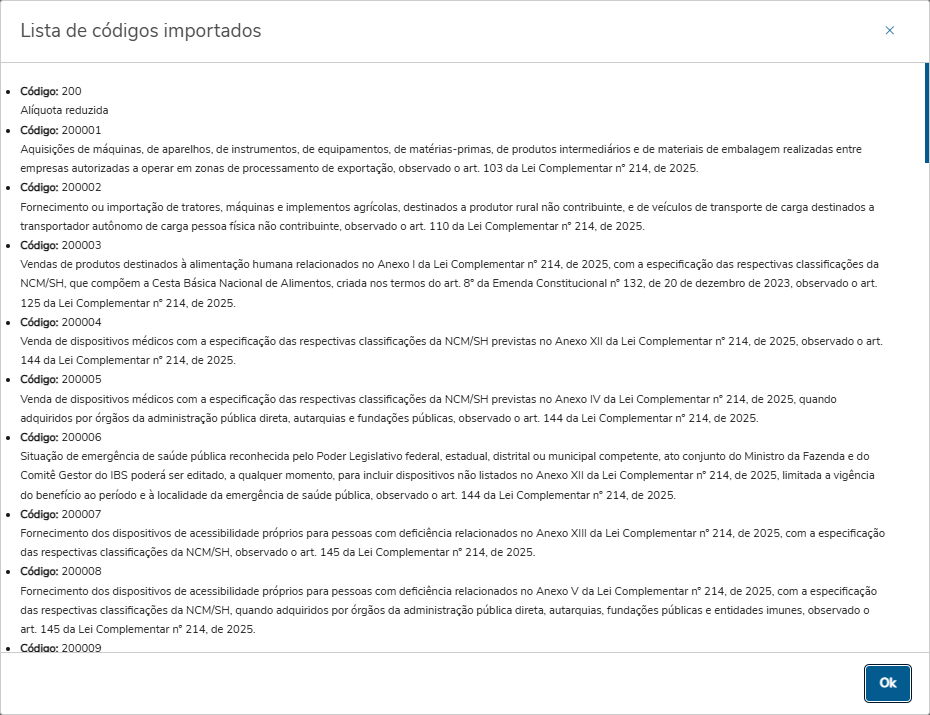 No botão Importar CSV, foi implementado um tratamento que permite a exibição da lista de códigos importados, conforme ilustrado na imagem abaixo.