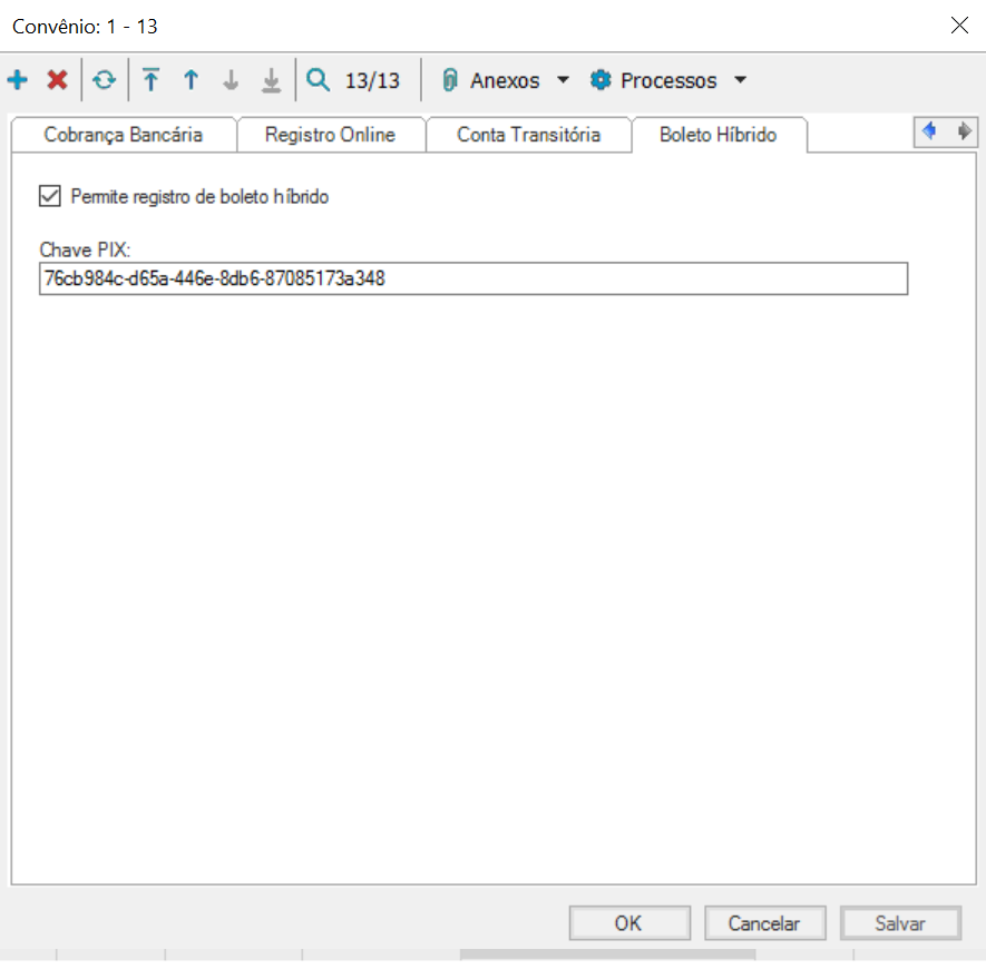 Atenção! - Não é possível parametrizar o mesmo convenio para utilização do Boleto Hibrido e Registros on-line.