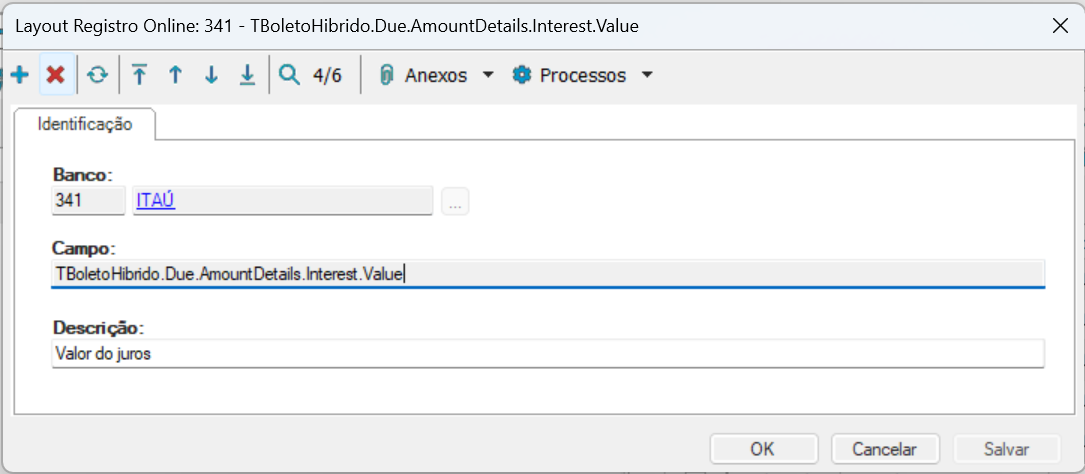 Exemplo Layout Valor do Juros
