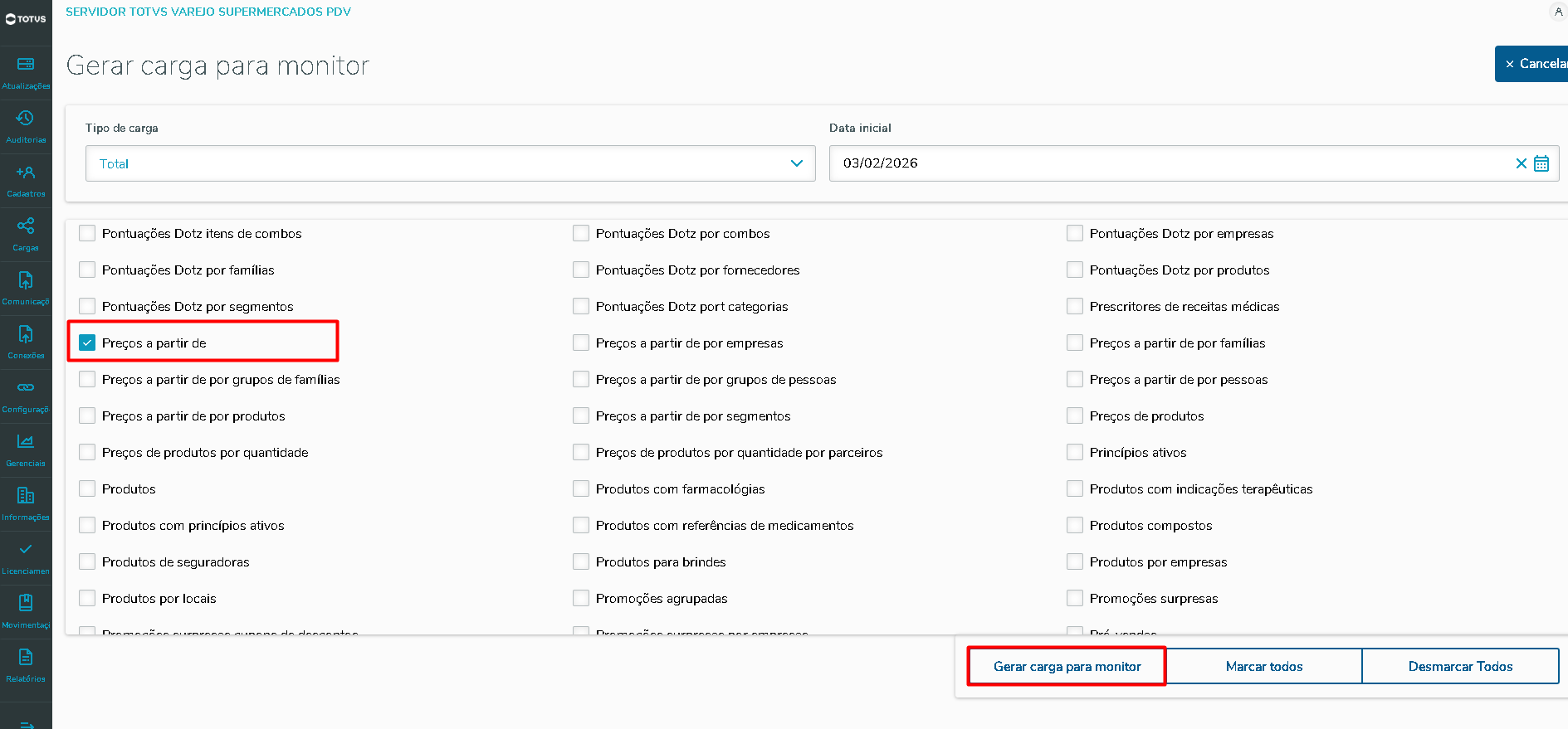 Após isso, realize o envio das cargas para o monitor de PDVs.