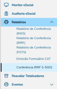 Ao clicarmos em "Conferência IRRF S-5002" será exibida a seguinte tela: