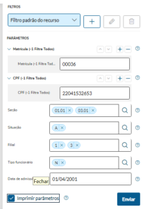| Matrícula | PFUNC.CHAPA | Filtra pela chapa do funcionário. |
