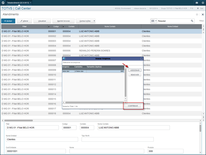 Descrição: Verifique o cadastro do teleatendimento criado.