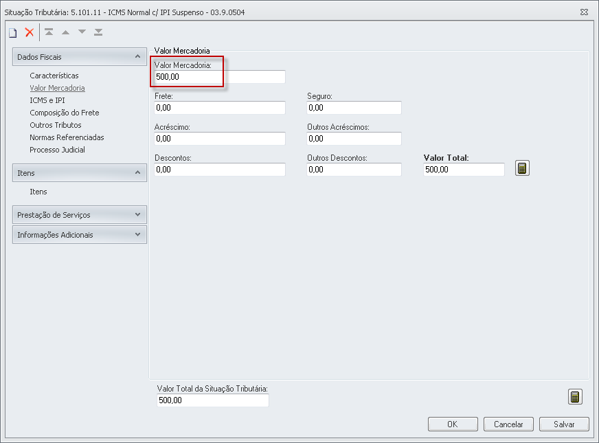 Valor da Mercadoria