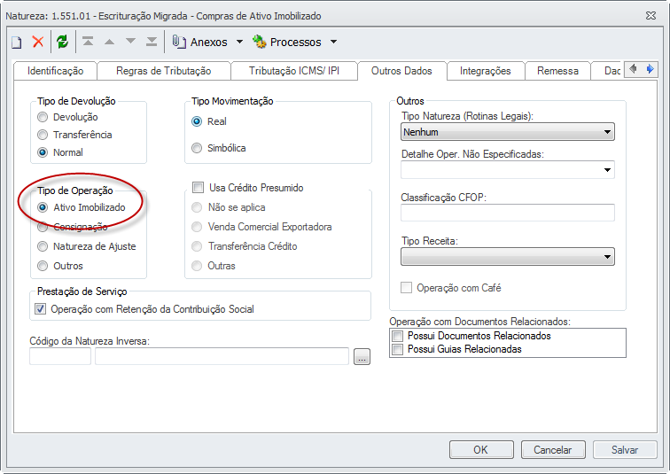 Criar e parametrizar o Tipo de Movimento a ser utilizado nas operações de entrada/saída de acordo com cada situação tributária;